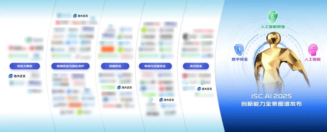 本届评选同期发布的《ISC.AI 2025创新能力全景图谱》与《ISC.AI 2025创新性案例》,系统梳理了当前数字安全与AI融合创新的热点赛道、代表企业与技术路线。所有评审数据与成果也已集成于“ISC.AI 2025创新百强智能体专家”,为行业提供持续洞察。吉大正元入选全景图谱“身份安全、网络与流量安全、终端安全、数据安全与隐私保护、安全大模型”五个领域。吉大正元数字身份安全实践被收录创新性案例中,为同业者提供了可参考的技术路径与场景落地方案。